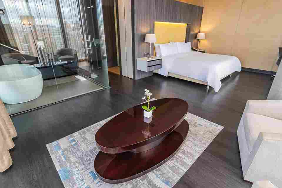 habitaciones amplias con diseño bio-contemporáneo y ventanales de piso a techo.